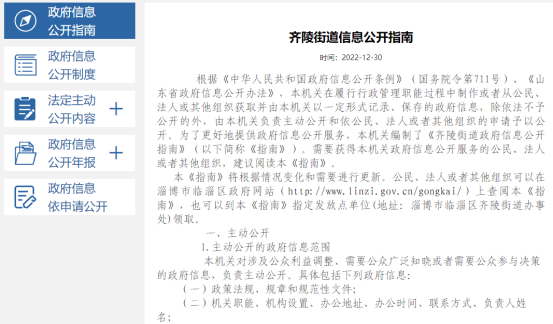 临淄区齐陵街道政府信息公开指南