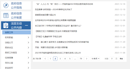 (四)政府信息公开平台建设情况。齐陵街道利用信息化手段丰富信息公开形式,打造多元信息公开渠道,以齐陵街道人民政府网站为主要平台,利用街道辖区内宣传栏、村广播、微信公众号、短视频等载体,对街道重点工作、惠民政策等及时推送,让政府信息公开工作走深、走实、走细。