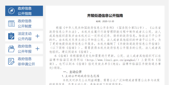 临淄区齐陵街道政府信息公开指南